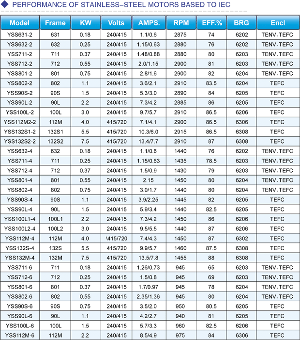 IEC標(biāo)準(zhǔn)不銹鋼電機(jī)